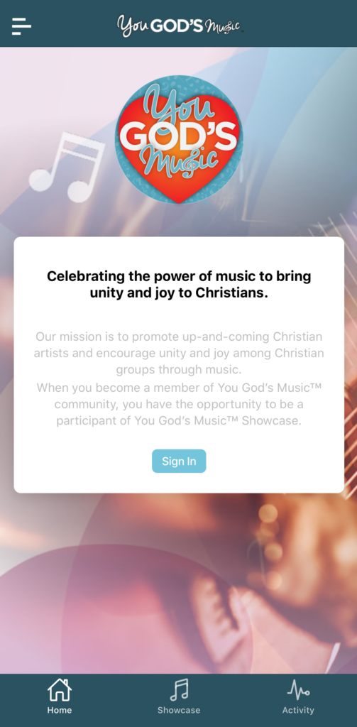 At the heart of the platform is the You, God's Music Showcase, which is an annual competition designed to highlight rising Christian artists and build connections through shared faith and creativity. The Showcase is open to performers from all backgrounds, and invites artists to submit video performances and take part in a multi-stage competition guided by public voting. The process is unified between the app and website, allowing users to discover new music, support their favorite artists, and watch the competition evolve every week.